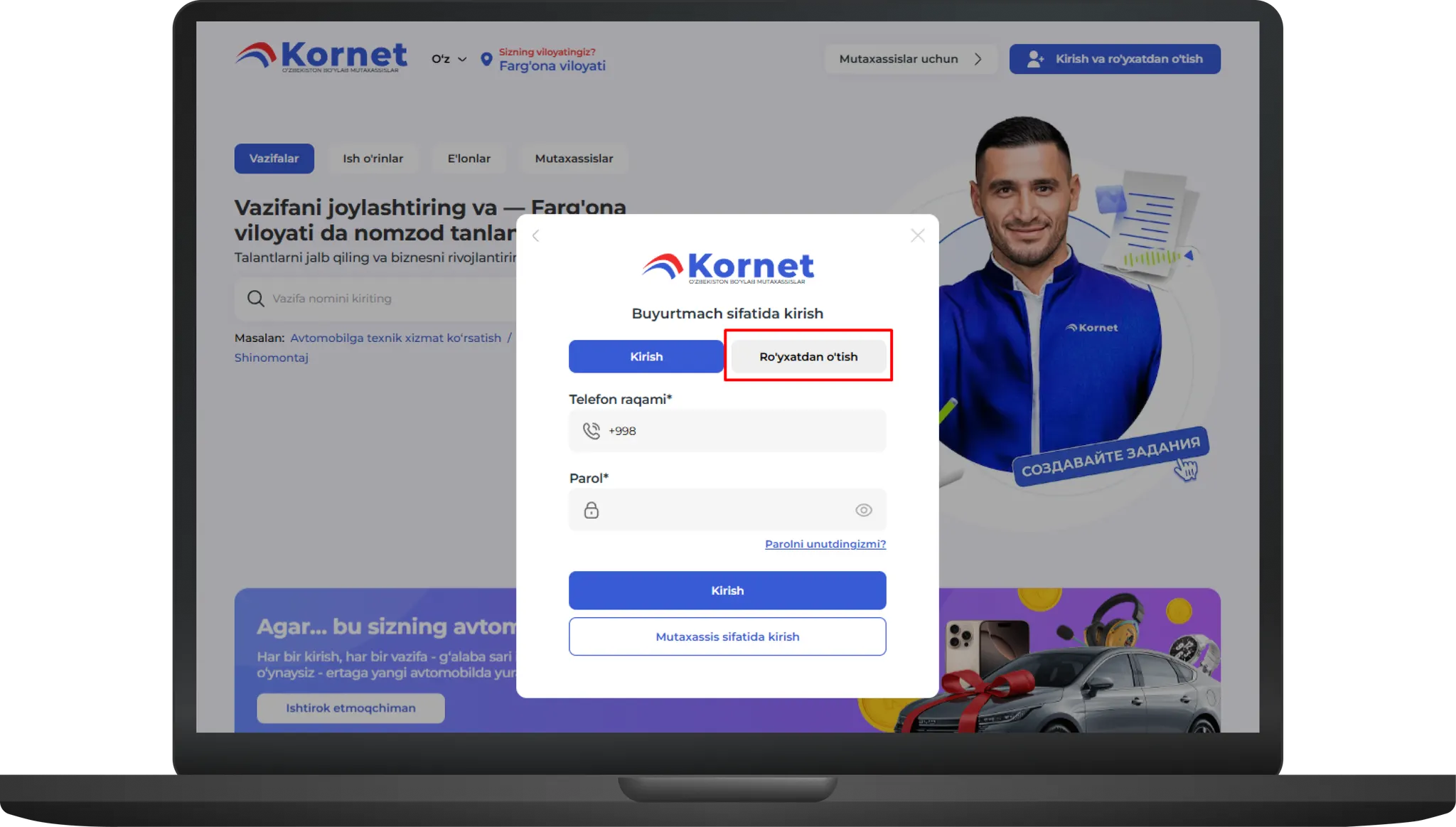 Buyurtmachi sifatida ro’yxatdan o’tish