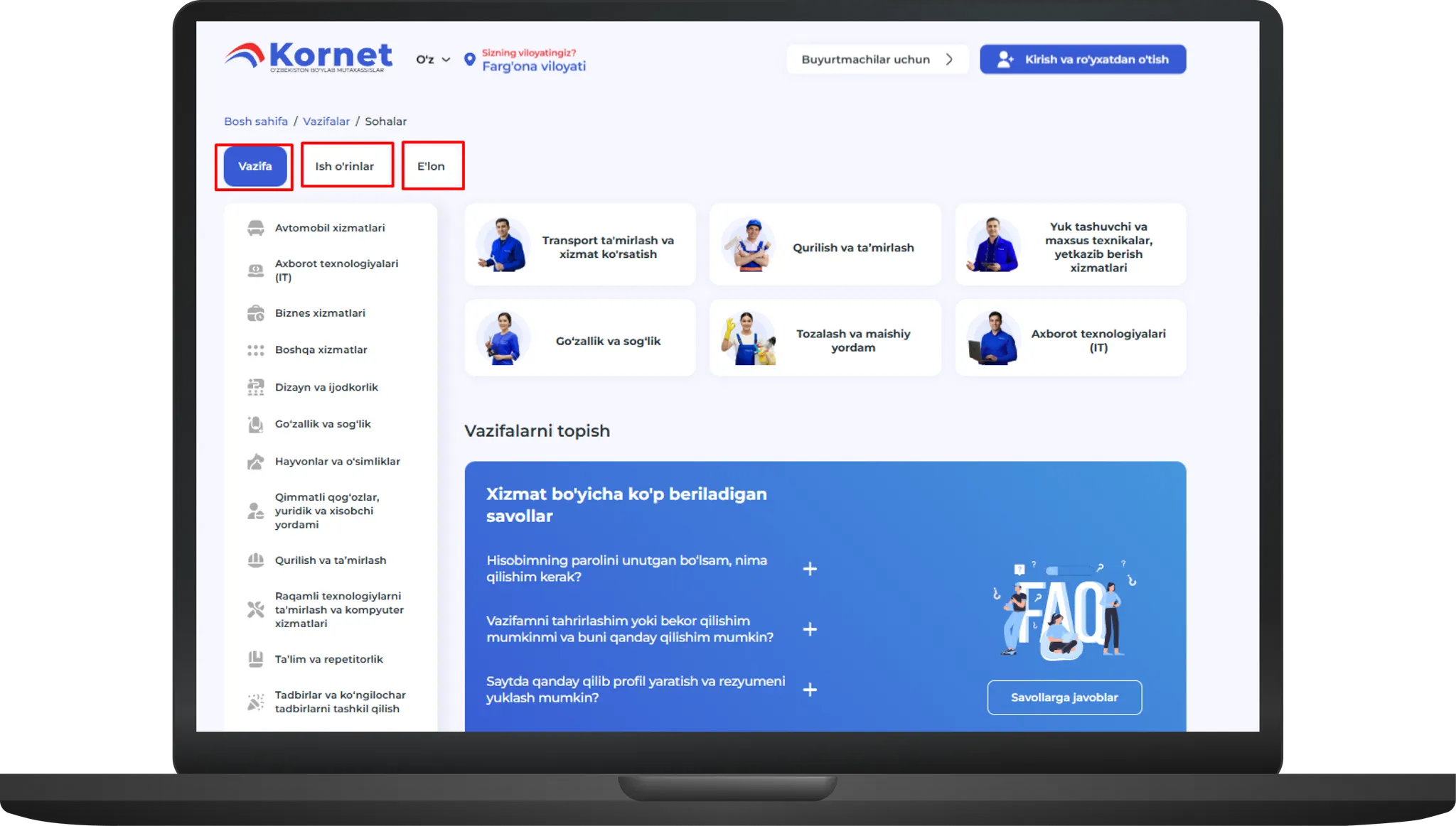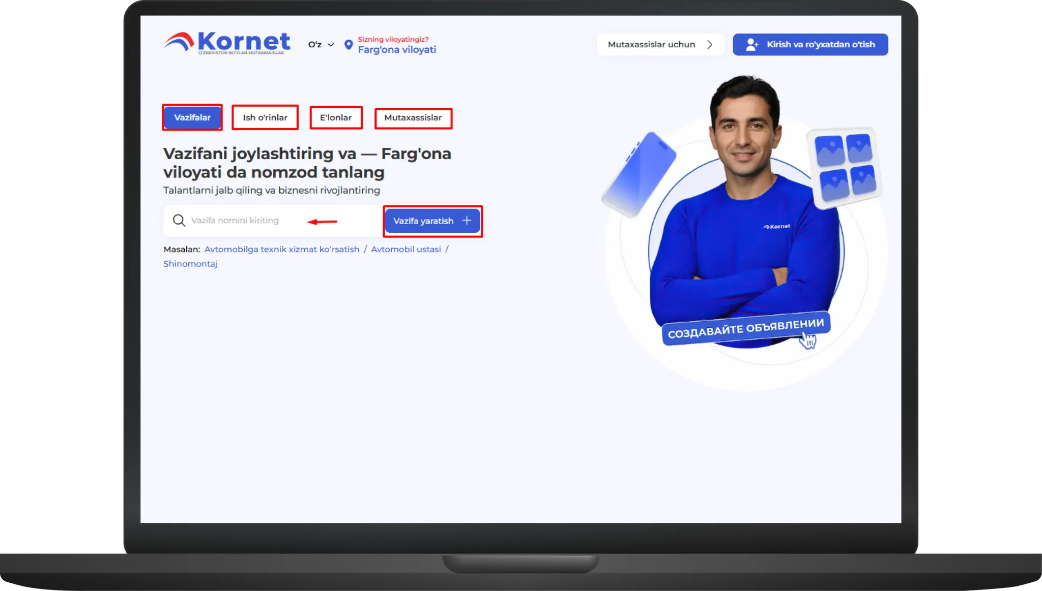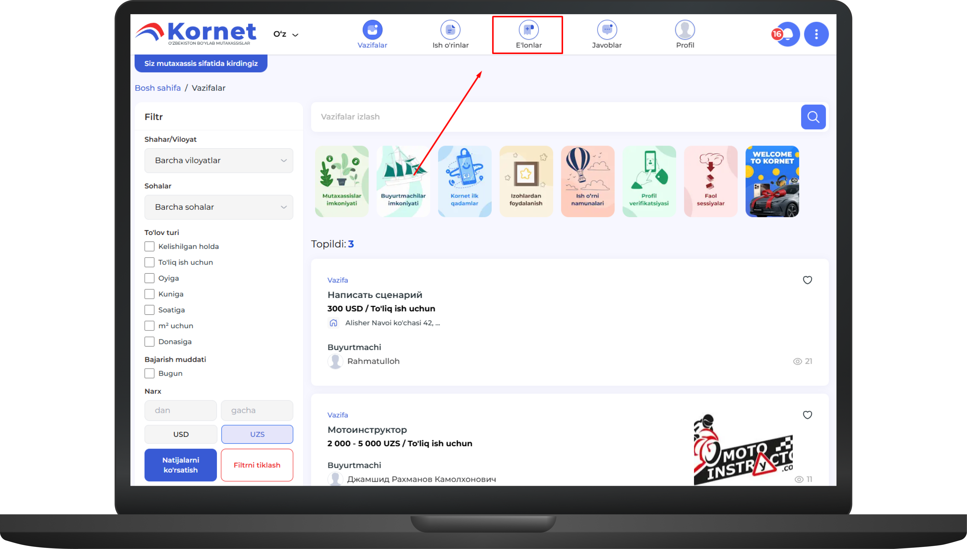 topshiriqlar, e'lonlar va bo'sh ish o'rinlarini joylashtirish