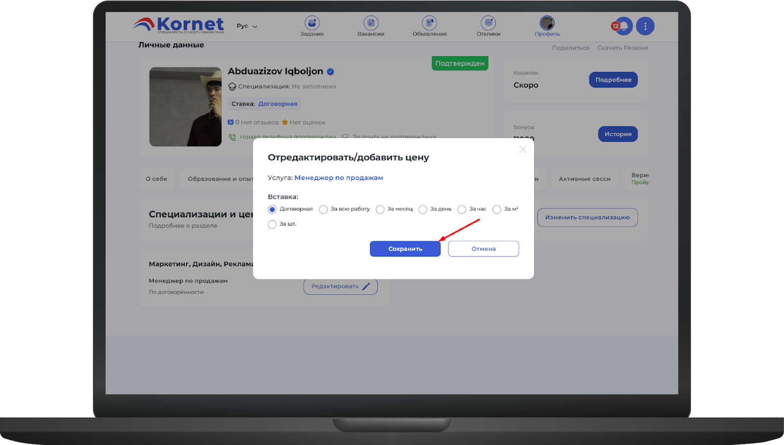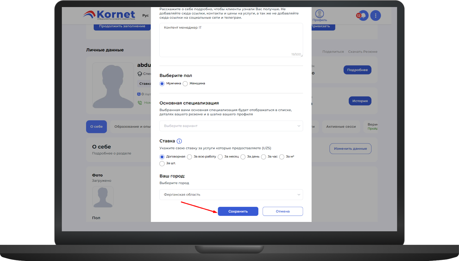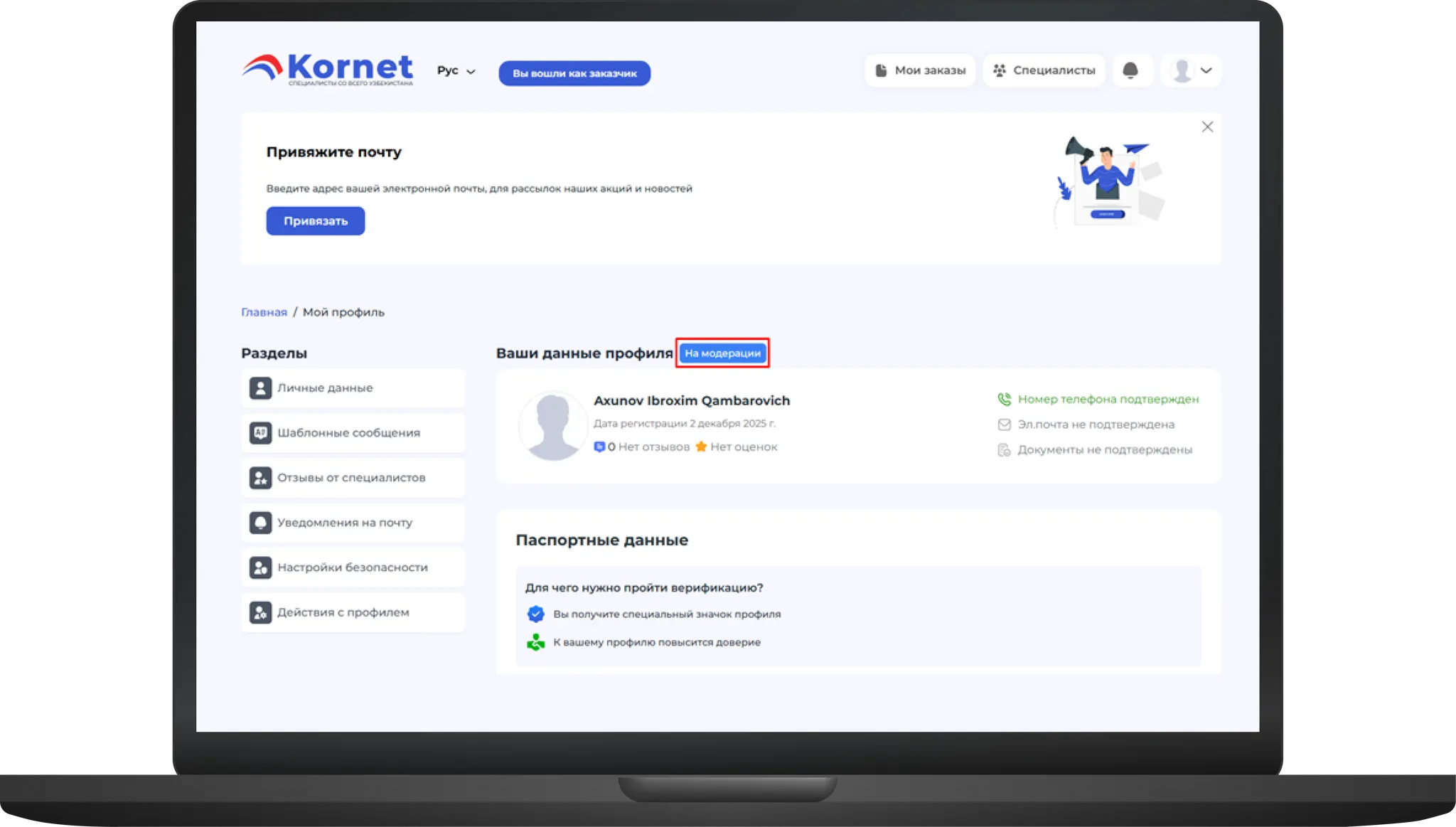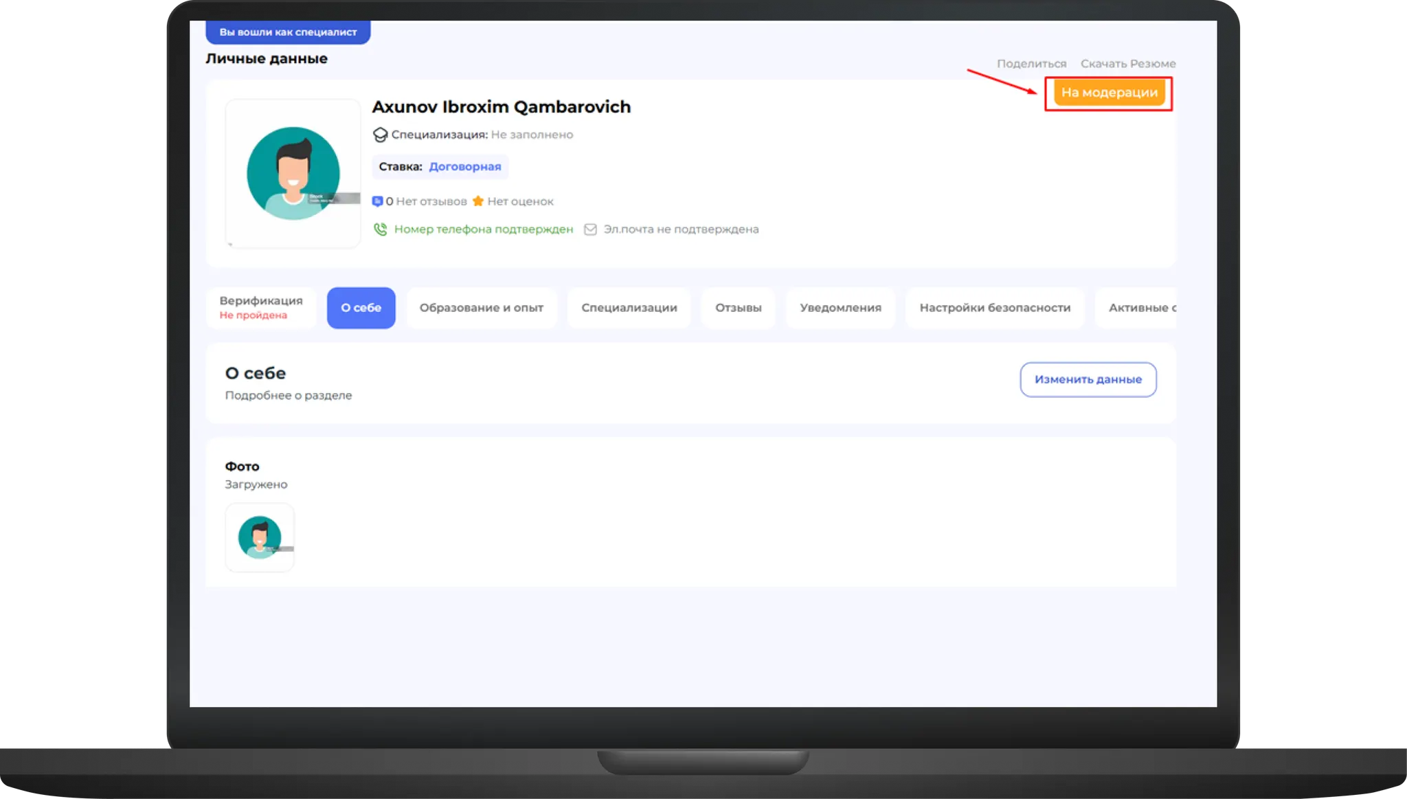 После нажатия ваши изменения будут сохранены и появятся в вашем профиле.Если вы передумали обновлять информацию, рядом есть кнопка «Отменить», которая позволит закрыть редактирование без сохранения. На этом этапе регистрация завершена.Ваш профиль отправлен на проверку — модераторам подтвердят данные аккаунта. image.png527.93 KB
