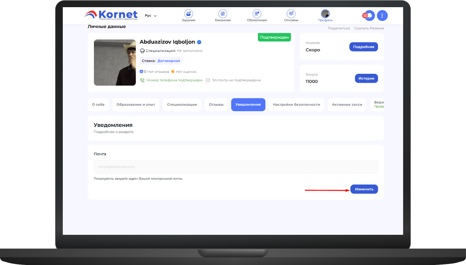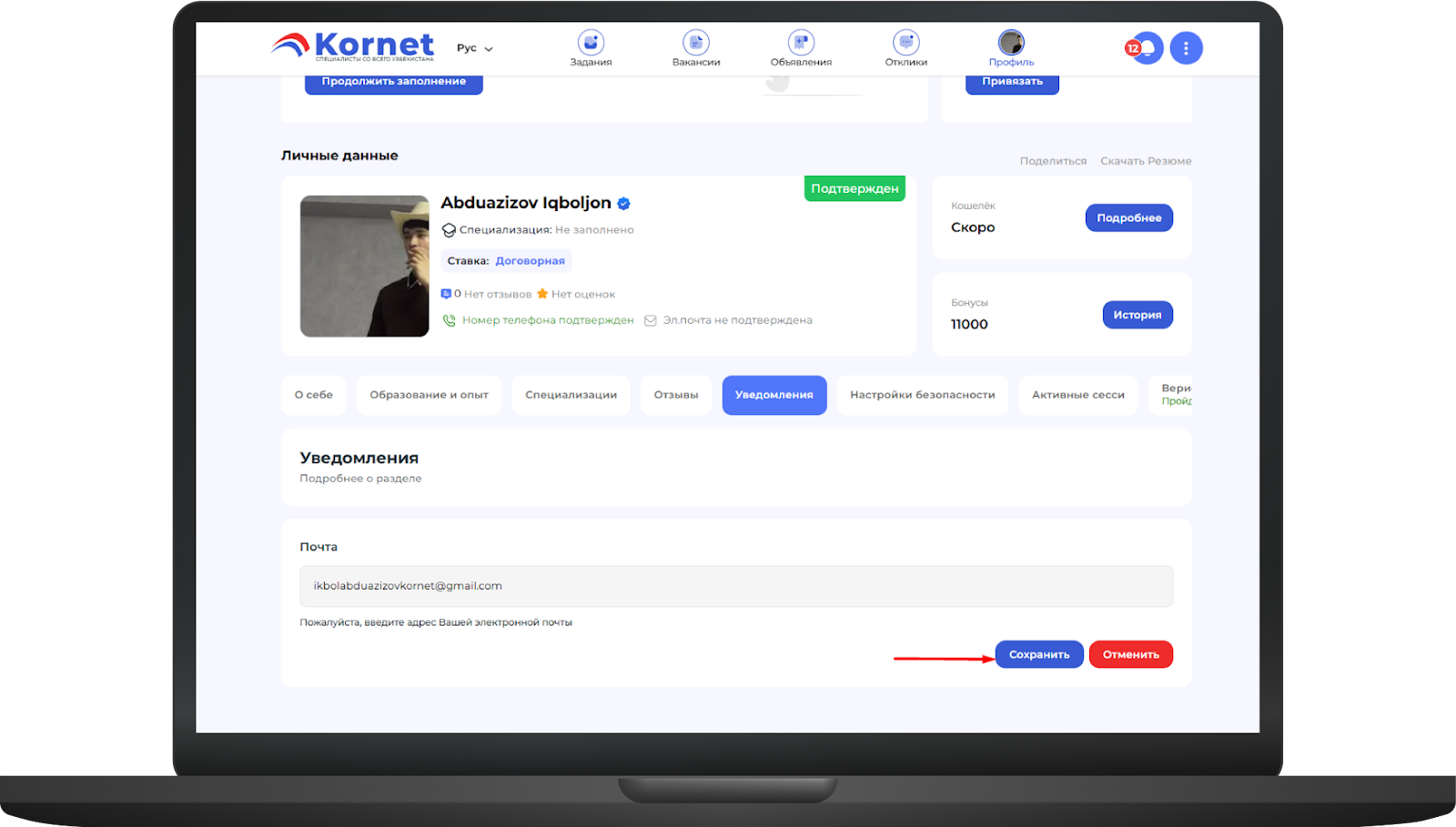 Вы можете управлять или редактировать уведомления на этой странице. - Здесь вы нажимаете кнопку редактирования и вводите свой адрес электронной почтыimage.png464.74 KB- После завершения редактирования нажмите кнопку сохраненияimage.png477.35 KB