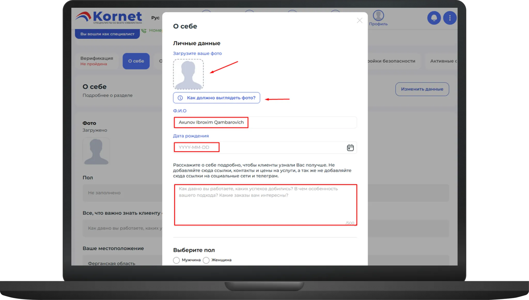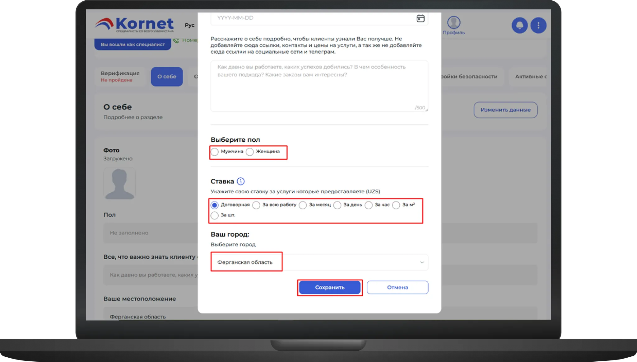 После нажатия ваши изменения будут сохранены и появятся в вашем профиле.Если вы передумали обновлять информацию, рядом есть кнопка «Отменить», которая позволит закрыть редактирование без сохранения.image.png660.02 KBНа этом этапе регистрация завершена.Ваш профиль отправлен на проверку — модераторы подтвердят данные. После верификации вы сможете:,