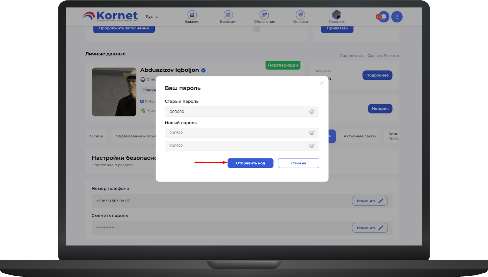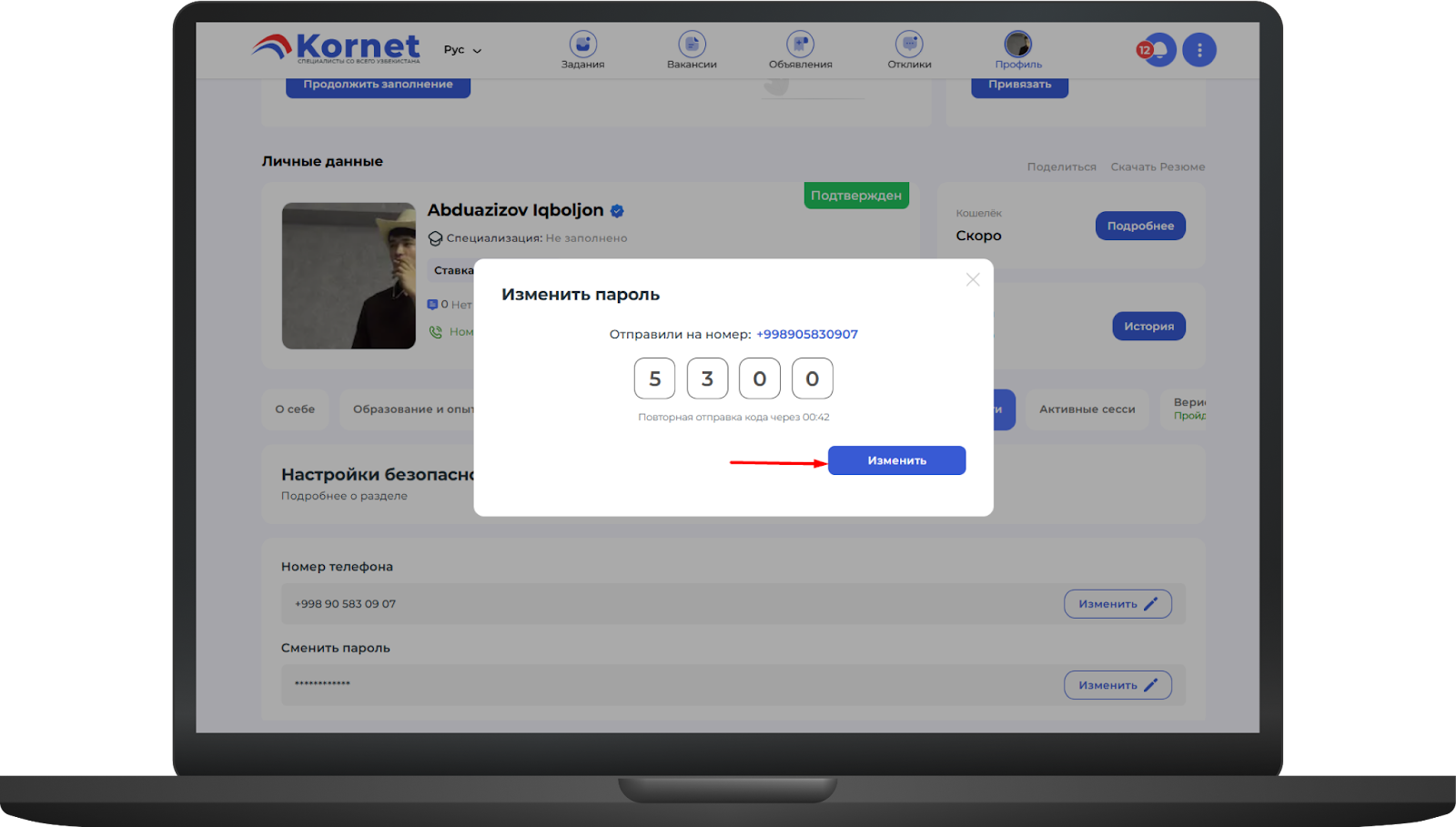 Вы можете изменить номер телефона или пароль здесь например, нажмите кнопку редактирования, чтобы изменить пароль image.png485.72 KBПосле нажатия кнопки редактирования введите старый пароль и новый пароль, затем нажмите кнопку отправки кодаimage.png468.77 KBПосле нажатия кнопки отправки кода на номер телефона отправляется SMS-код и вводится в это окно, а затем нажимается кнопка изменения После этого пароль будет успешно изменёнimage.png473.87 KB