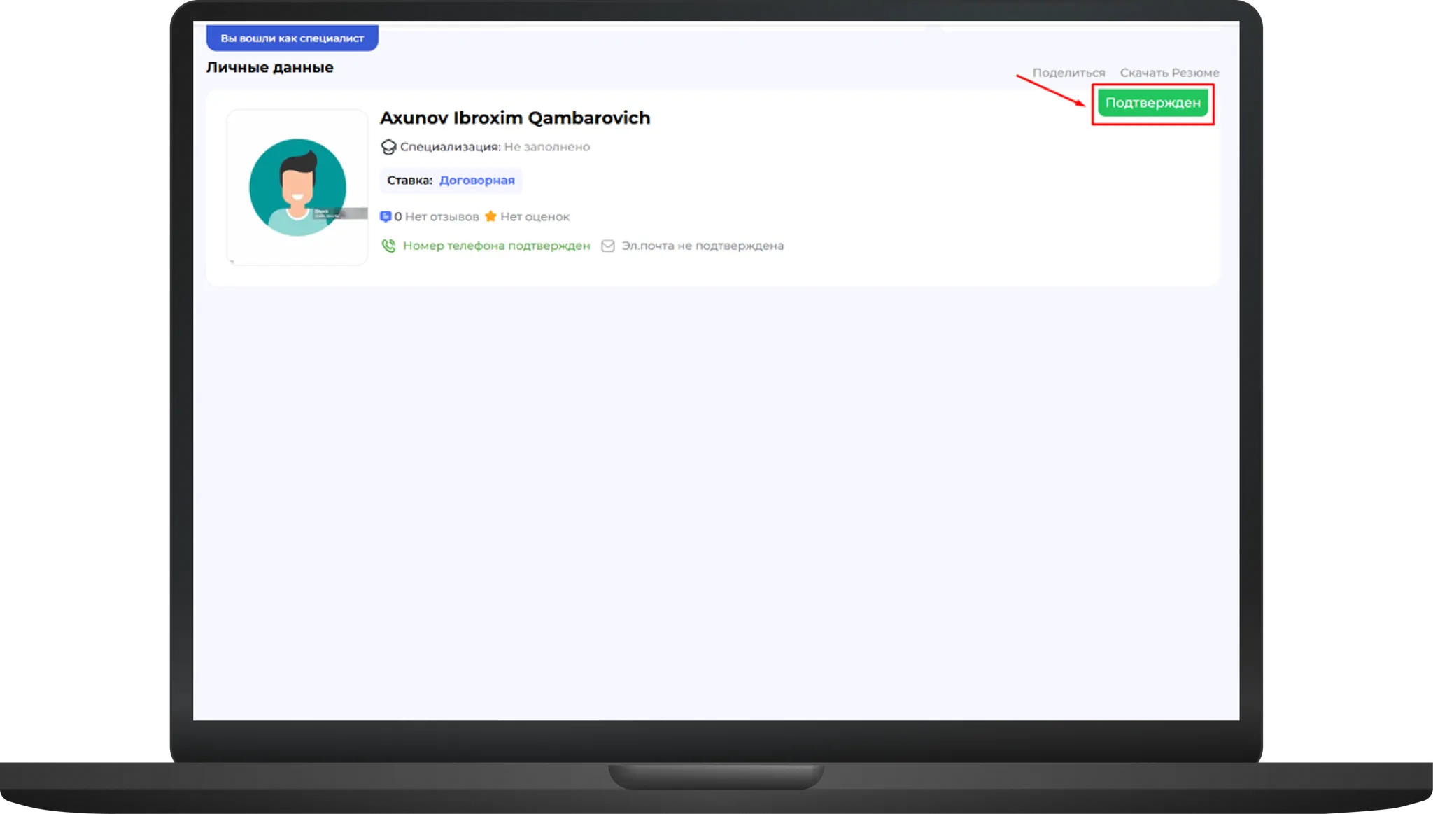 После того как модераторы подтвердят ваши данные (ФИО, дату рождения, пол и информацию о себе), в вашем профиле появится зелёный статус «Подтверждён», как на изображении ниже. Это означает, что ваш аккаунт верифицирован, и вы можете полноценно пользоваться всеми функциями платформы.image.png428.44 KB