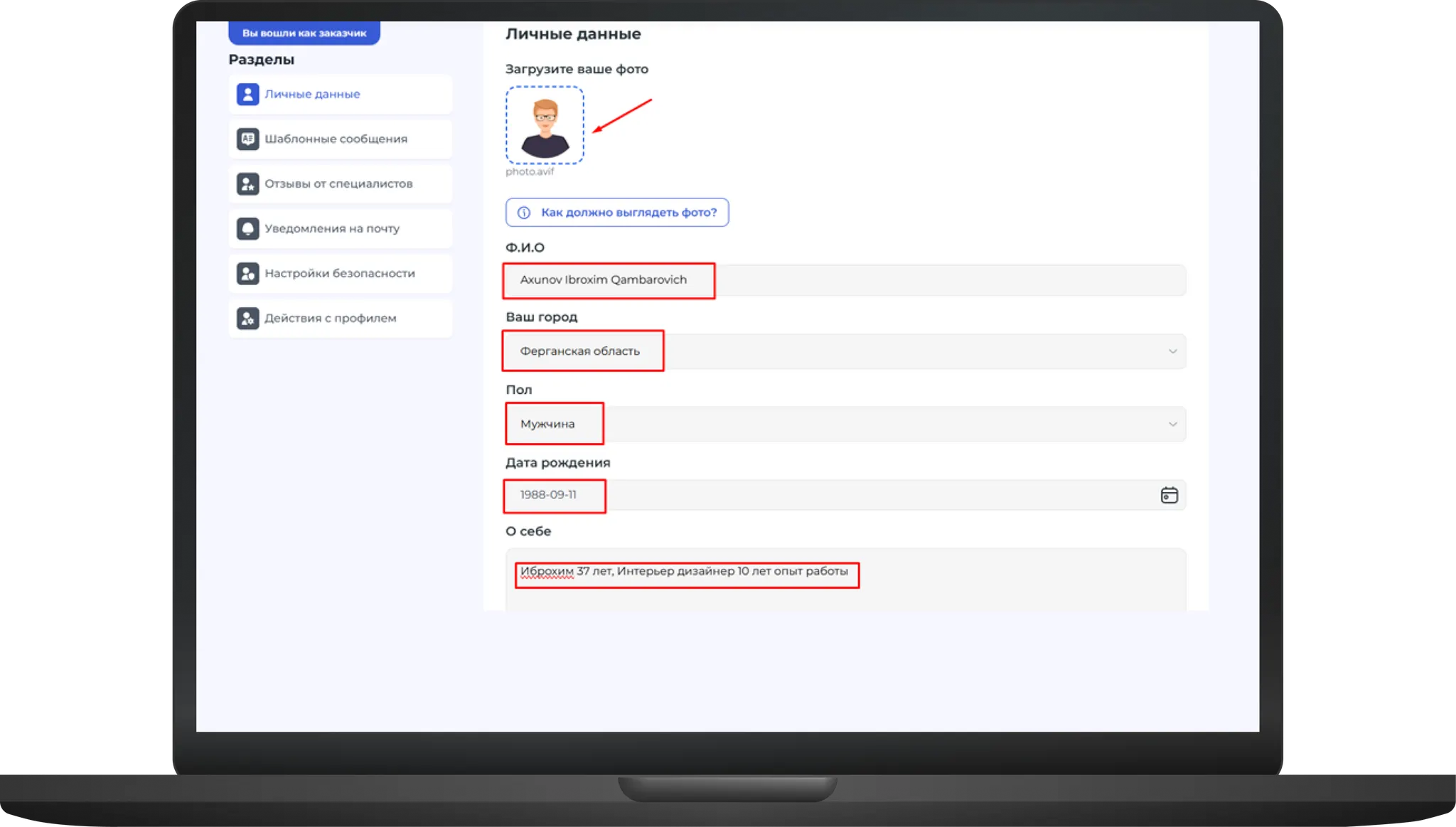 После заполнения всех полей нажмите кнопку «Зарегистрироваться».image.png863.56 KB Заполнения данных image.png460.21 KBЗаполнение личных данных профиля